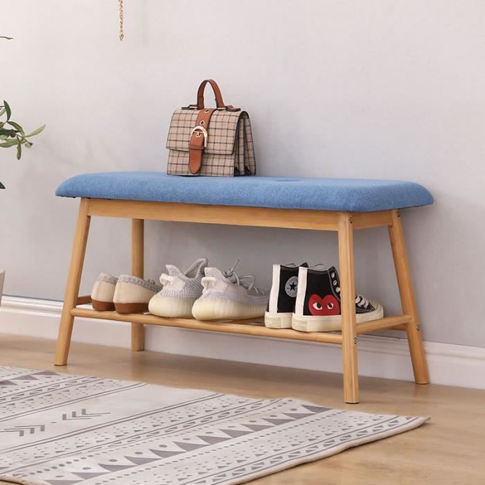 Meuble D Entree Banc De Rangement A Chaussure Avec Coussin Rembourre Et 1 Etagere Bleu Achat Vente Meuble A Chaussures Meuble D Entree Banc De Soldes Sur Cdiscount Des Le Janvier Cdiscount