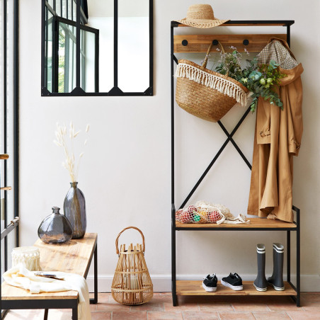 Ce meuble d entrée maison du monde avec miroir est très sympa et s’accordera très facilement avec une décoration industrielle et de caractère Le grand miroir agrandit cet espace, tandis que ls trois tiroirs permettent de ranger les chaussures. Un meuble dans l'entrée façon coffre peut aussi bien prendre le rôle d'un banc d'entrée très utile, surtout si vous le choisissez avec un dessus molletonné ou que vous y placez de jolis coussins pour rendre l'assise plus agréable Son petit plus par rapport au banc avec casiers sa porte cache tout le bazar que vous pouvez y entreposer !. Meuble d'entrée complet en bois (chêne/taupe) avec miroir scandinave CALVI Delamaison 519,99 € Un banc, des patères, un meuble de rangement Découvrez comment aménager votre entrée pour en faire un espace chaleureux et ordonné.