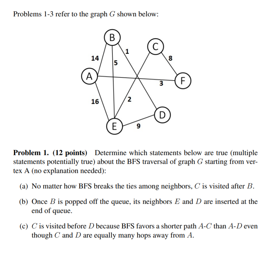Solved Problems 1 3 Refer To The Graph G Shown Below B 1 Chegg Com