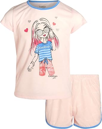 Amazon Com Bebe Girls Summer Pajamas Sleepwear Short Sleeve T Shirt Short Set Clothing
