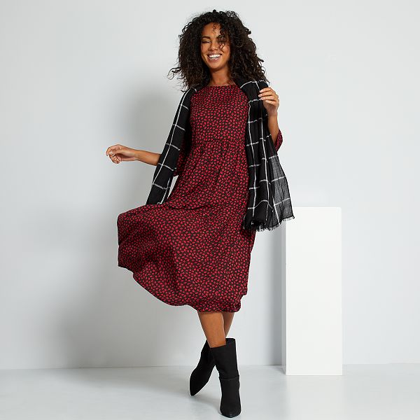 Robe Longue A Volant Imprimee Fleurs Femme Noir Rouge Kiabi 28 00