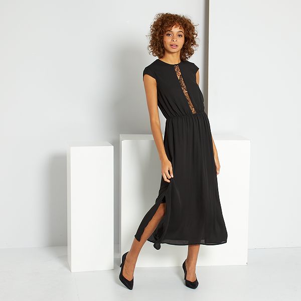 Robe Longue Details Dentelle Femme Noir Kiabi 12 50