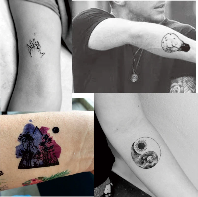 T1805 1 Piece Nature Ligne Tatouage Temporaire Avec Ligne Visage Bois Yin Et Yang Jour Nuit Et Claps Motif Corps Peinture Tatouages Aliexpress