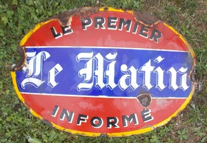 Ancienne Plaque Emaillee Bombee Publicitaire Le Matin Le Premier Informe Ebay
