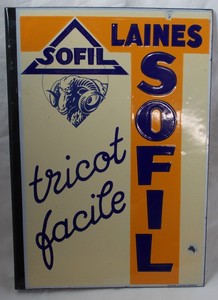 Ancienne Plaque Emaillee Publicitaire Laines Sofil Double Face Avec Equerre Ebay