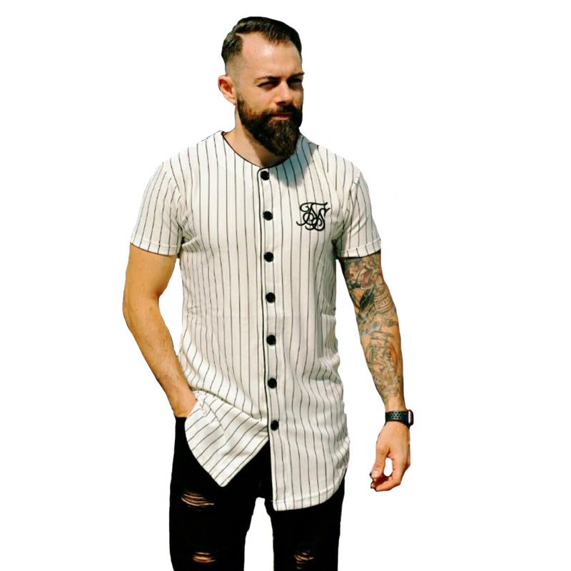 21 New Hip Hop Sik Silk Shirt Men Stripe Short Sleeve Baseball Uniform Chemise Homme Fashion Men Clothing 19 From Zhongguimin 24 34 Dhgate Com