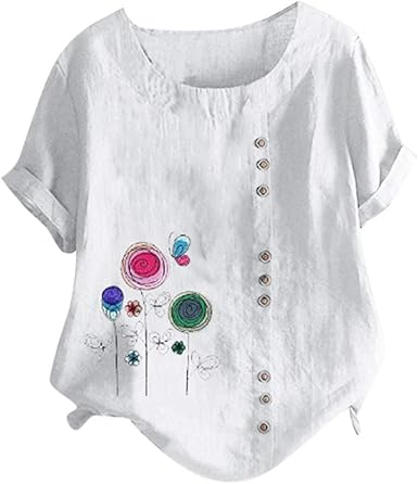 Cefgr Col Rond Tops Pour Femme Tunique Manche Courte Coton Chemisiers Et Blouses Les Loisirs Chemisiers Linge De Maison Tops Les Loisirs Chemisiers 5 Blanc Eu 38 Cn M Amazon Fr Vetements Et Accessoires