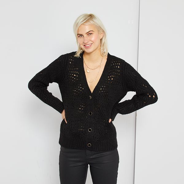 Gilet En Grosse Maille Ajoure Femme Noir Kiabi 00
