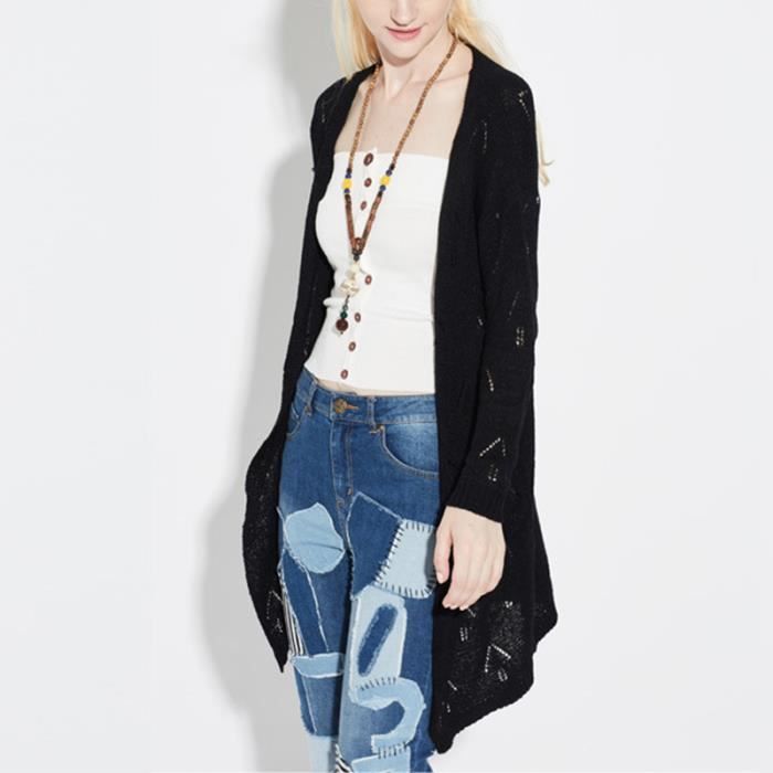 Simple Flavor Gilet Femme Long Maille Manches Longues Ajouree Noir Achat Vente Gilet Cardigan Soldes Sur Cdiscount Des Le Janvier Cdiscount