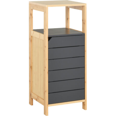 Kleankin Meuble Colonne De Salle De Bain Armoire Haute Meuble Rangement 3 Etageres 2 Tiroirs Bambou 30 X 30 X 144 3 Cm Noir Bois Naturel Aosom Fr Armoires De Rangement Aosom France