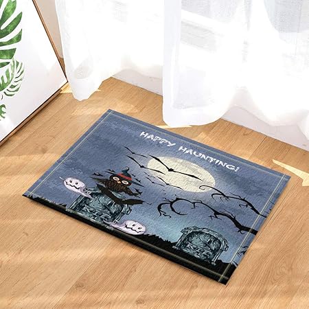 Bleu Joli Ciel Sous La Jolie Lune Blanche Chauve Souris Noire Chauve Souris Grise Pierre Tombale Noire Mignonne Chouette Coffre Fort Coffre Fort Non Toxique Non Chimique Durable Facile A Nettoyer Amazon Fr Cuisine Maison