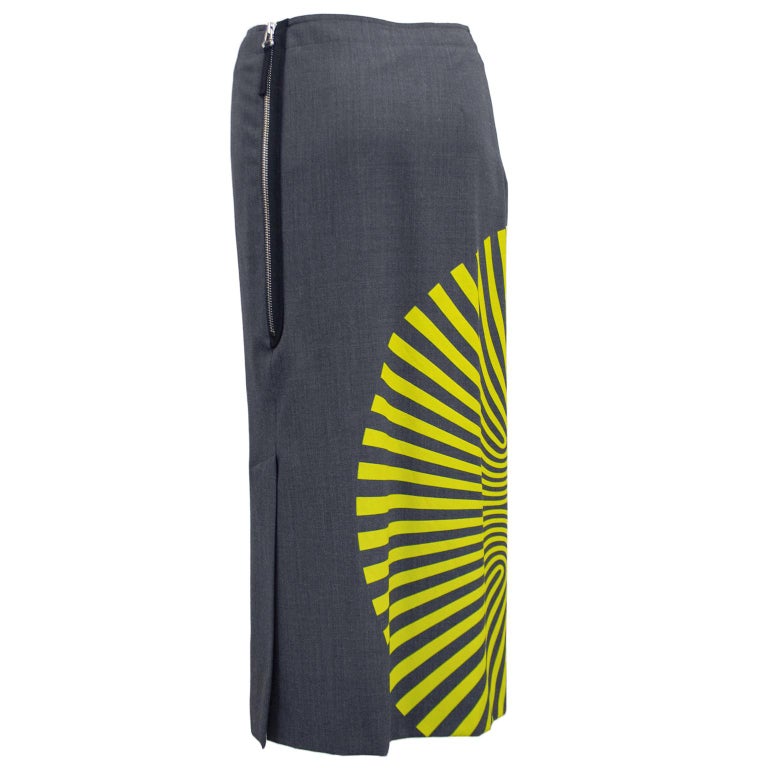 Dries Van Noten Fall 14 Yellow Spiral Print Pencil Skirt In Grey For Sale At 1stdibs