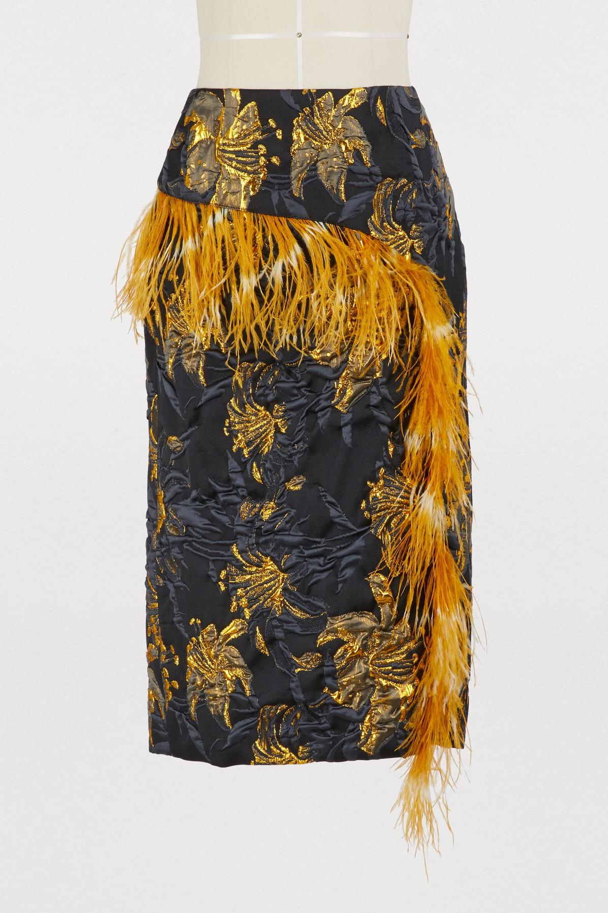 Dries Van Noten Feather Trimmed Skirt In Black Modesens