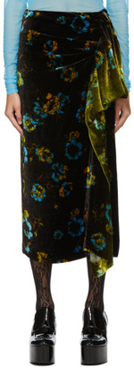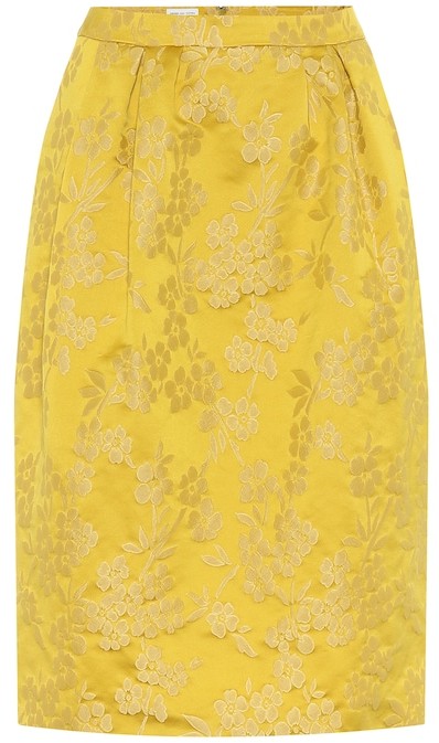 Dries Van Noten Floral Print Silk Jacquard Skirt In Yellow Modesens