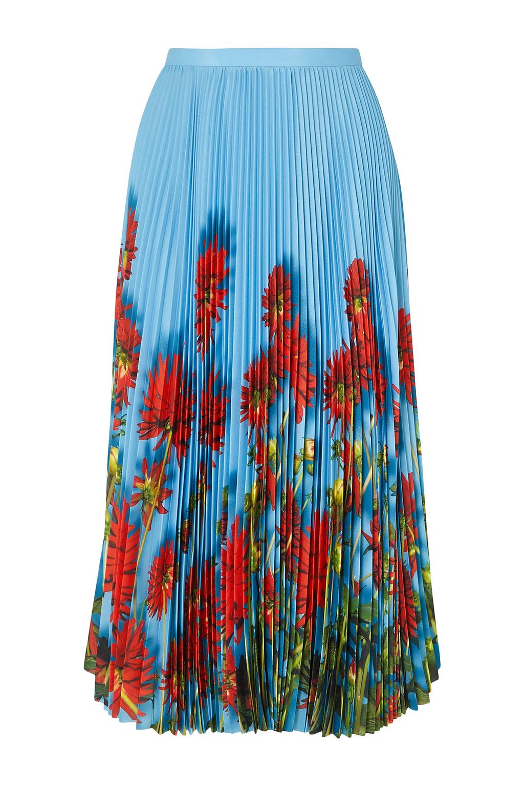 Light Blue Sax Pleated Floral Print Crepe De Chine Midi Skirt Sale Up To 70 Off The Outnet Dries Van Noten The Outnet