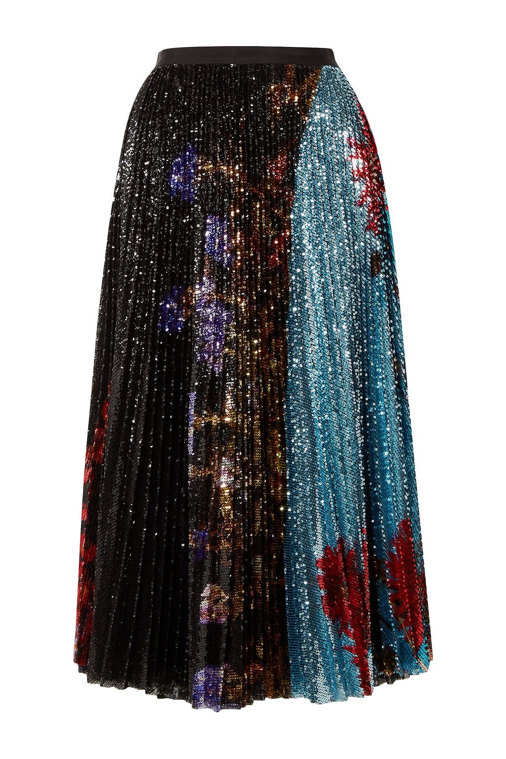 Black Pleated Sequined Floral Print Tulle Midi Skirt Sale Up To 70 Off The Outnet Dries Van Noten The Outnet