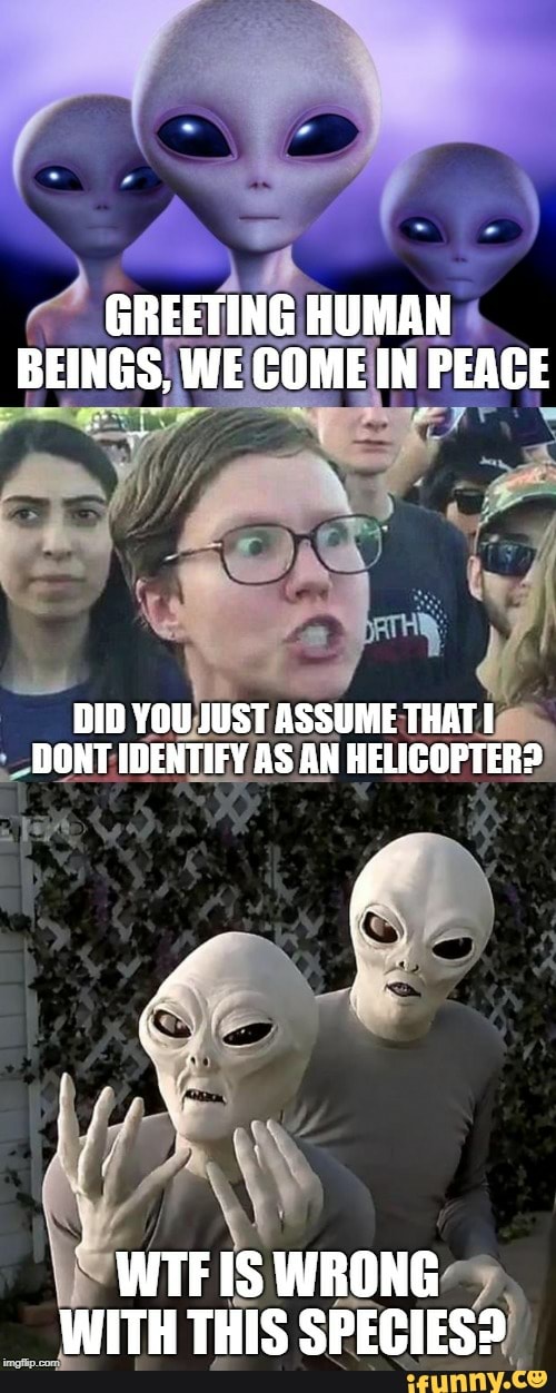 Greeting Human Beings We Come In Peace Did You Just Assume That Dont Identify As An Helicopter Wtfis Wrong With This Species Ifunny