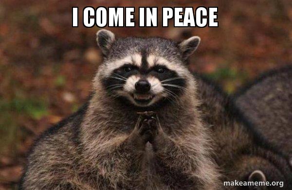 I Come In Peace Evil Plotting Raccoon Make A Meme