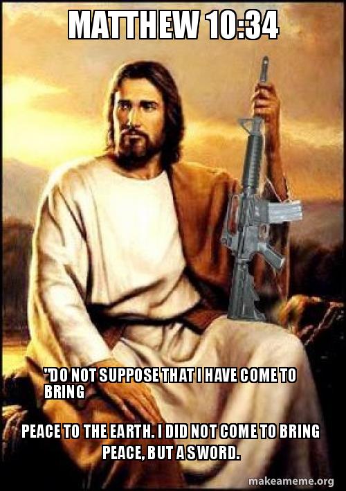 Matthew 10 34 Do Not Suppose That I Have Come To Bring Peace To The Earth I Did Not Come To Bring Peace But A Sword Make A Meme