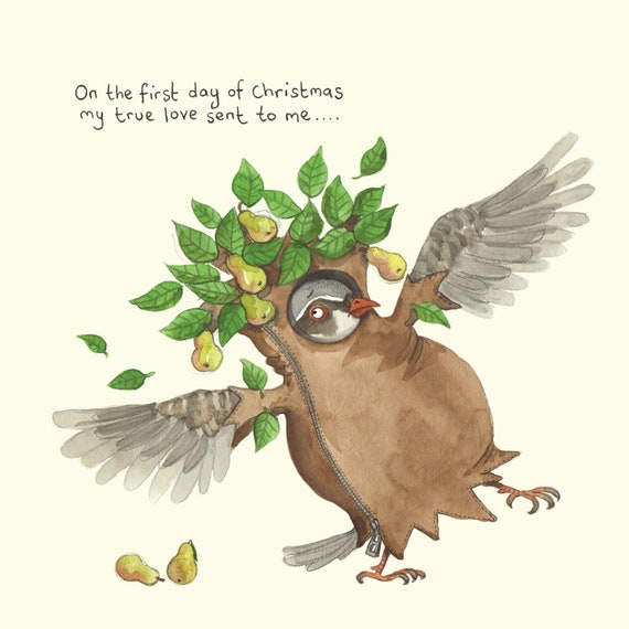 Partridge In A Pear Tree Card Funny Christmas Card Bird Etsy