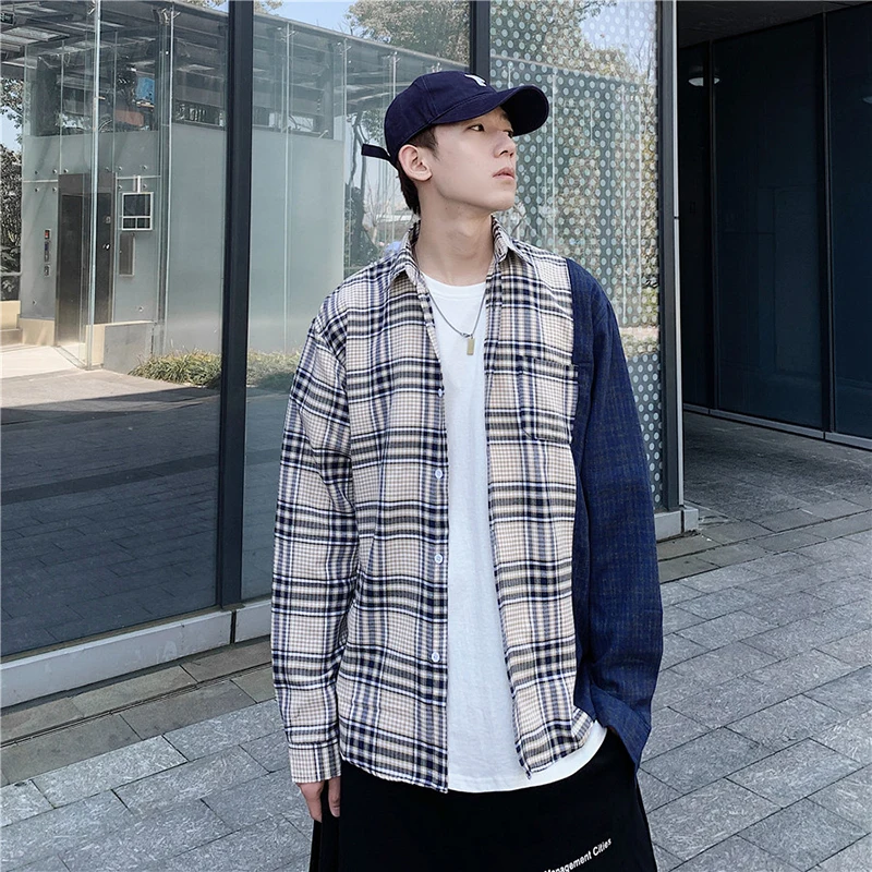 21 Patchwork Plaid Shirt New Summer Fashion Men Shirts Chemise Homme Mens Checkered Shirts Loose Long Sleeve Shirt Men Blouse From Jasonstuff 17 43 Dhgate Com