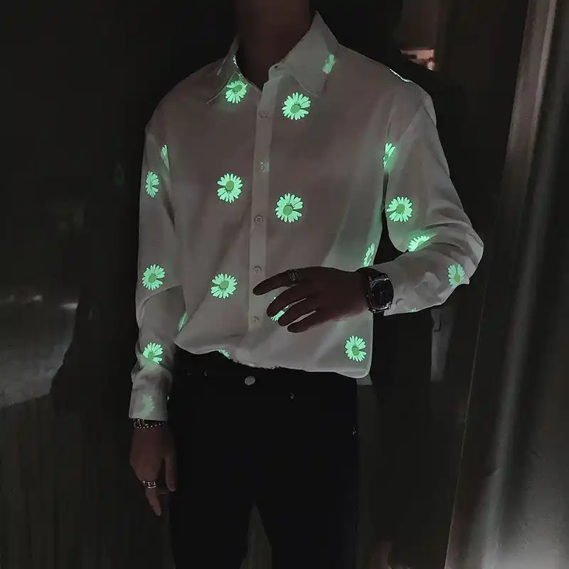 Reflective Daisy Flower Shirt Black White Chemise Homme Manche Longue Fw s Desinger Fancy Print Casual Shirts For Men Casual Shirts Aliexpress
