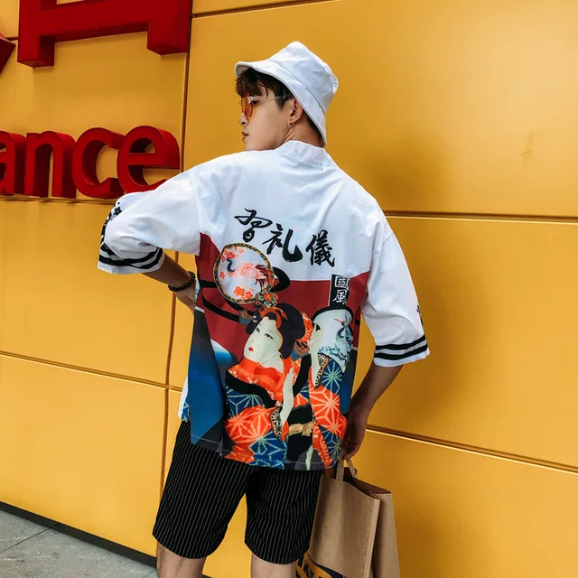 Gersri Men Shirt Loose Patchwork Camisa Masculina Camiseta Chemise Homme Para Hombre Streetwear Japen Korea Style Kimono Casual Shirts Aliexpress