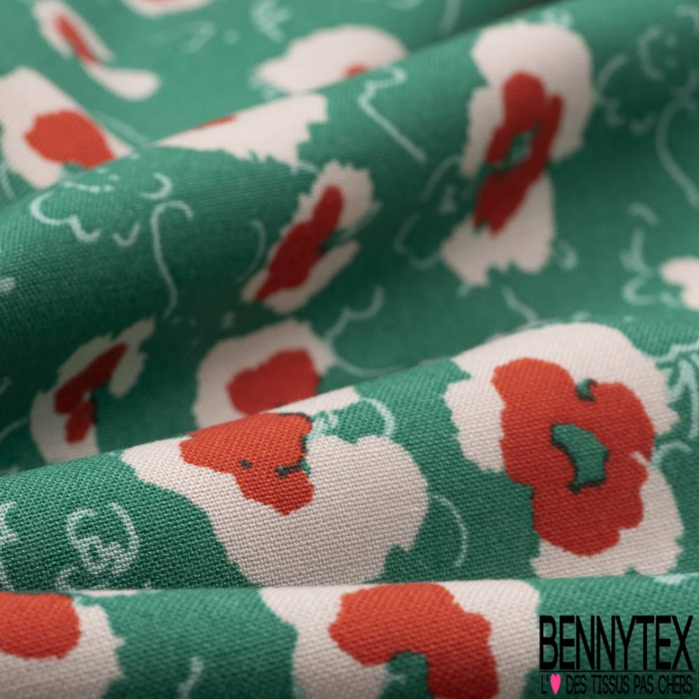 Fibranne Viscose Imprime Motif Floral Rose Rouge Fond Emeraude Bennytex Vente De Tissus Pas Cher Au Metre