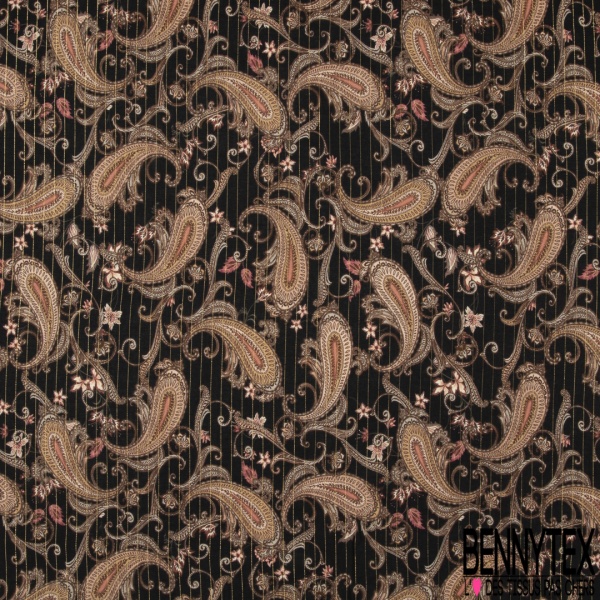 Tissu Viscose Motifs Cachemire Noir