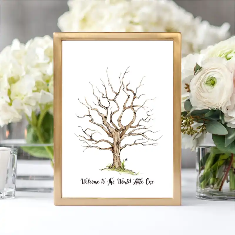 Baby Shower Welcome Sign Fingerprint Family Tree Wall Art Prints Diy Creative Guest Book Canvas Painting Baby Shower Decoration Painting Calligraphy Aliexpress