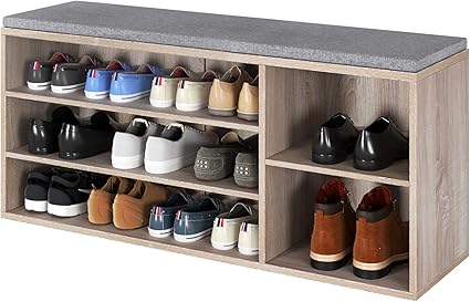 Homfa Meuble D Entree Banc A Chaussures Etagere 3 Niveaux Coussins Coffre En Bois Chene 105x30x48cm Amazon Fr Cuisine Maison