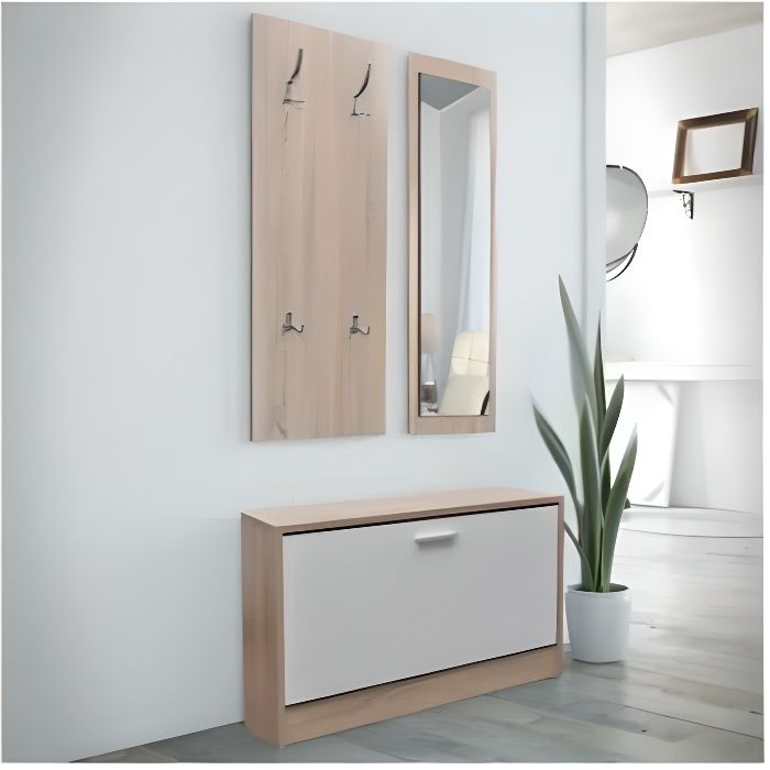 Meuble D Entree 1 Range Chaussures 1 Porte Manteau 1 Miroir Agglomere Plastique Alliage D Aluminium Aspect Chene Et Blanc Achat Vente Meuble D Entree Meuble D Entree 1 Range Ch Soldes Sur Cdiscount Des Le