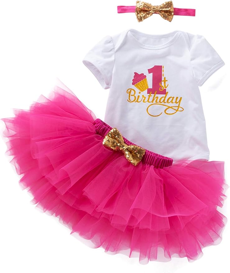 Fymnsi Enfant Bebes Filles Cest Mon 1er 2eme Anniversaire Robe Princesse Manche Courte 1 An 2 Ans Fete Vetements Premier Deuxieme Anniversaire Soiree Tulle Robe Bandeau Photographie Tenue 1 2 Ans Robes Bebe Fille 0 24m