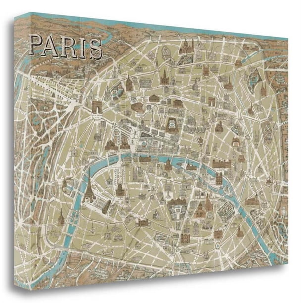 Monuments Of Paris Map Blue By Wild Apple Portfolio Canvas Art 34 In W X 23 In H 6 Lbs Walmart Com Walmart Com