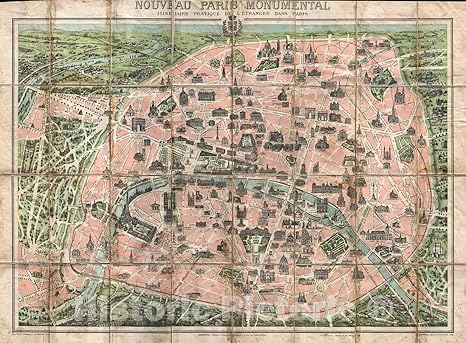 Amazon Com Historic Map Garnier Pocket Map Or Plan Of Paris France Eiffel Tower And Other Monuments 1900 Vintage Wall Art 24in X 32in Home Kitchen