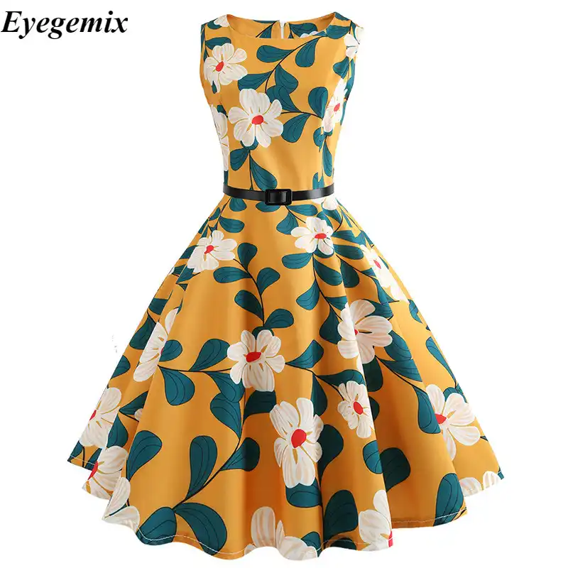 Eyegemix 21 Womens Summer Dresses 50s 60s Robe Vintage Retro Pin Up Swing Rockabilly Floral Print Dress Plus Size Vestidos Dress 50s Floral Print Dresssummer Dress Aliexpress