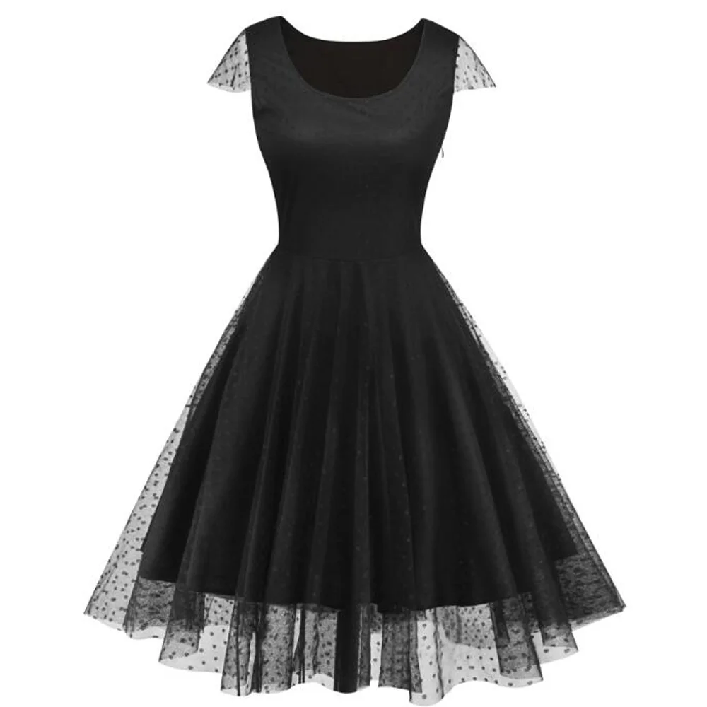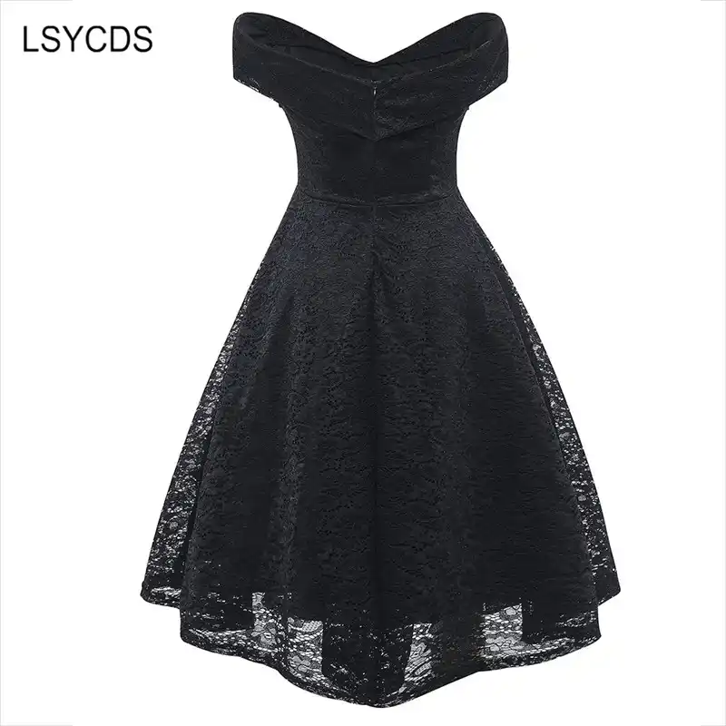 Lsycds Sexy Summer Party V Neck Dress A Line Short Sleeve Robe Vintage Retro Casual Party Rockabilly Black 50s Lace Women Dress Dresses Aliexpress