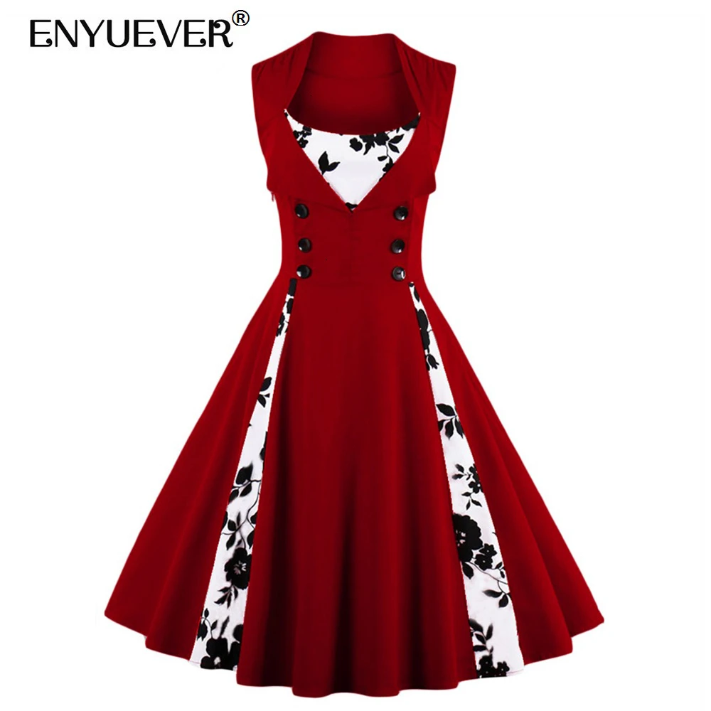 Enyuever Robe Vintage Dress 50s Swing Vestido Rockabilly Retro Christmas Party Floral Dot Plus Size Dresses For Women 4xl 5xl Plus Size Dress Vintage Dress 50sdress 50s Aliexpress