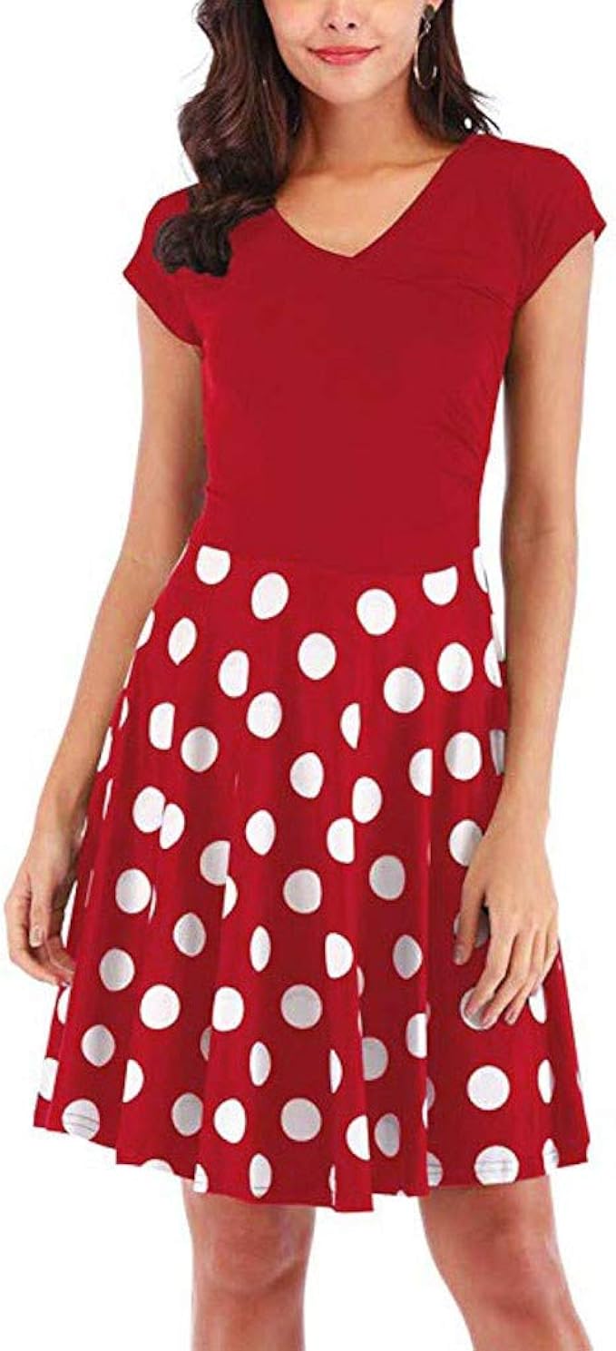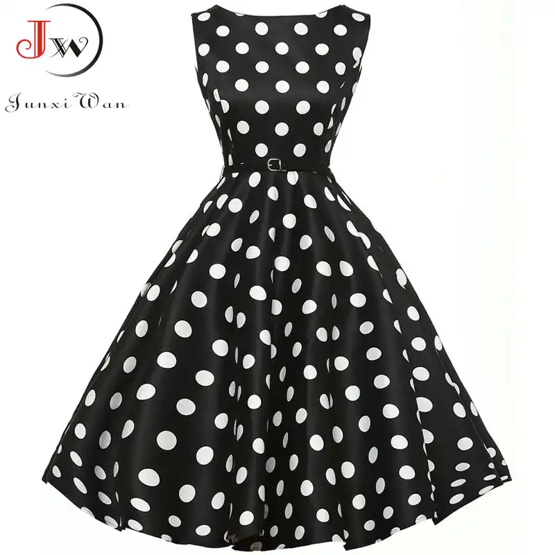 Amazon Com 19 Summer Women Dress Retro Robe Vintage Dresses 50s 60s Rockabilly Polka Dot Swing Dress Vestidos Clothing