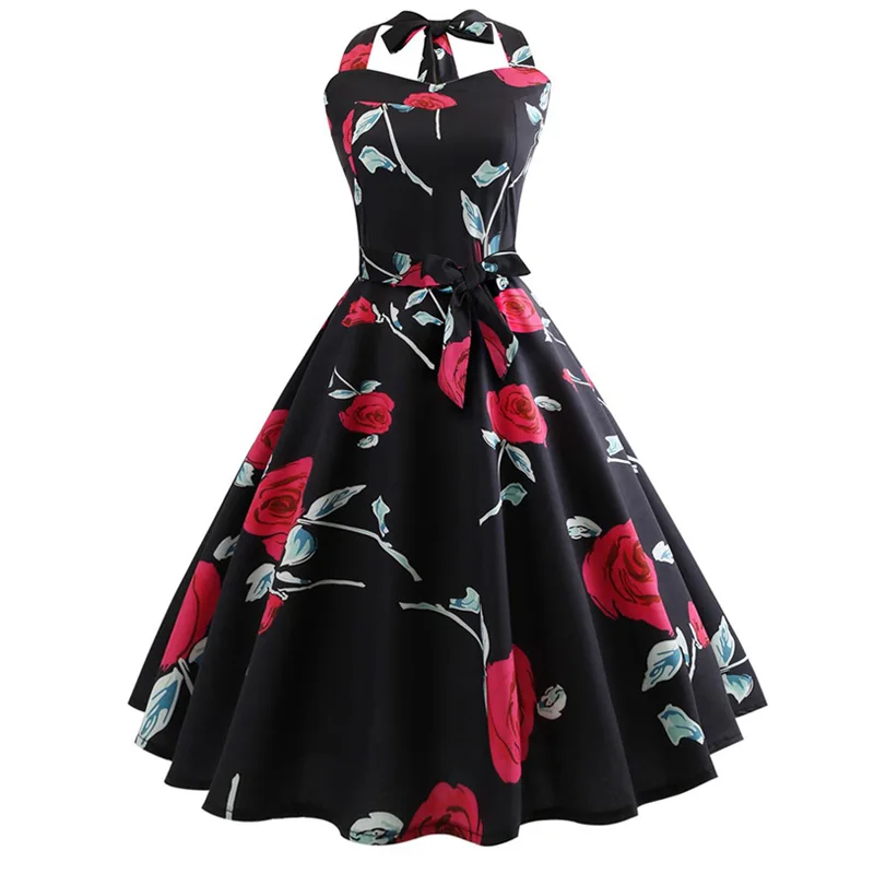 Midi Floral Dresses For Women Bandage Party Dress Hepburn Vintage Retro Robe Femme Sleeveless Swing Pin Up Dress Plus Size Buy Cloths Women Dress Sequin Maxi Dress Rajasthani Dress For Ladies Product On