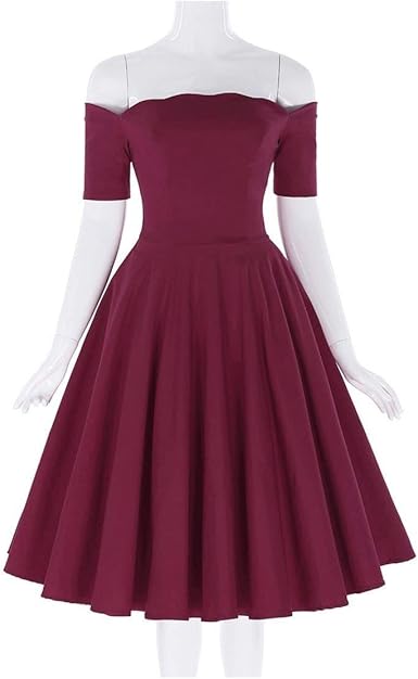 Women Audrey Hepburn Off Shoulder Dresses 18 50s 60s Robe Vintag