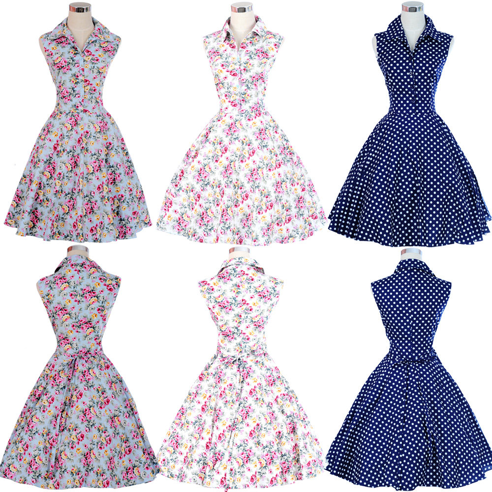19 Womens Summer Dresses 50s 60s Robe Vintage Retro Pin Up Swing Rockabilly Flower Print Dress Plus Size Vestidos Dresses Aliexpress