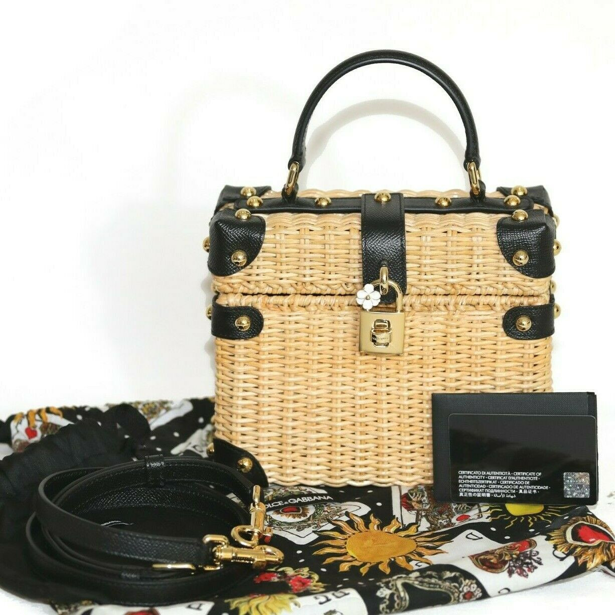 New 4900 Dolce Gabbana Bag Purse Wooden Box Black Hand Painted Tulip Leather Ebay