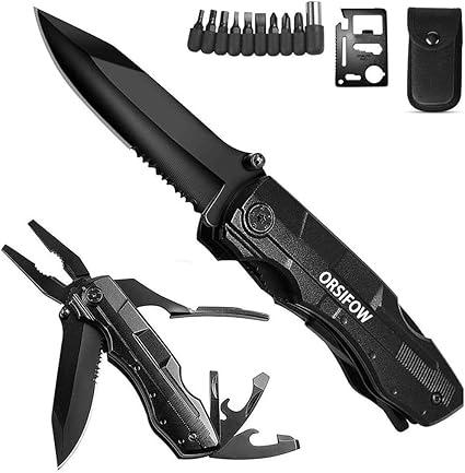 Orsifow Couteau Multifonction Couteau Suisse 13 En 1 Inoxydable Outil Multifonction De Poche Avec Pince Tournevis Decapsuleur Pour Camping Randonnee Y Compris Couteau De Carte De Credit Edc Amazon Fr Sports Et Loisirs