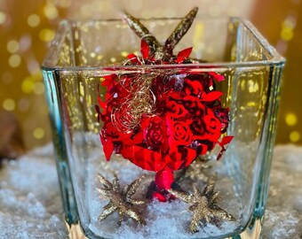 Centres De Table De Fetes Centre De Table Rouge Et Or Fleur De Noel Arrangements Floraux De Noel Table De Fete Noel
