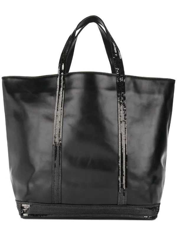 Vanessa Bruno Bag Cabas Sequin Black Calfskin Leather Tote Tradesy