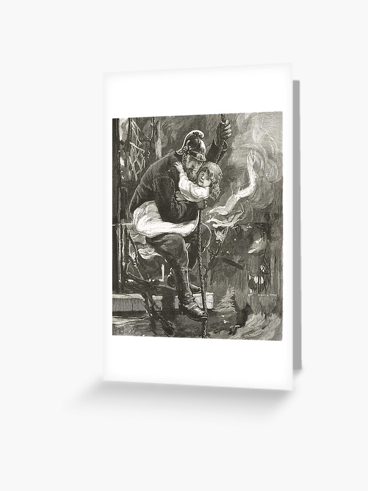 Carte De Vœux Pompier Victorien Sauvant Un Enfant Par Artfromthepast Redbubble