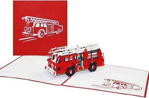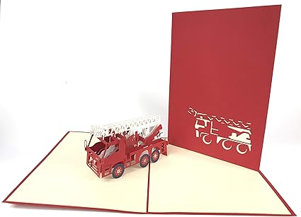 Carte De Vœux Pop Up En 3d Motif Camion De Pompiers Kirigami En Papier Amazon Fr Fournitures De Bureau