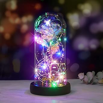 Shirylzee La Belle Et La Bete Rose Feuille Dor Rose Lampe Fleur Rose Coloree Rose Eternelle Avec Lumieres Led Carte De Voeux Decoration Dinterieur Ideale Cadeau Pour Les Vacances Multicolore Amazon Fr Luminaires