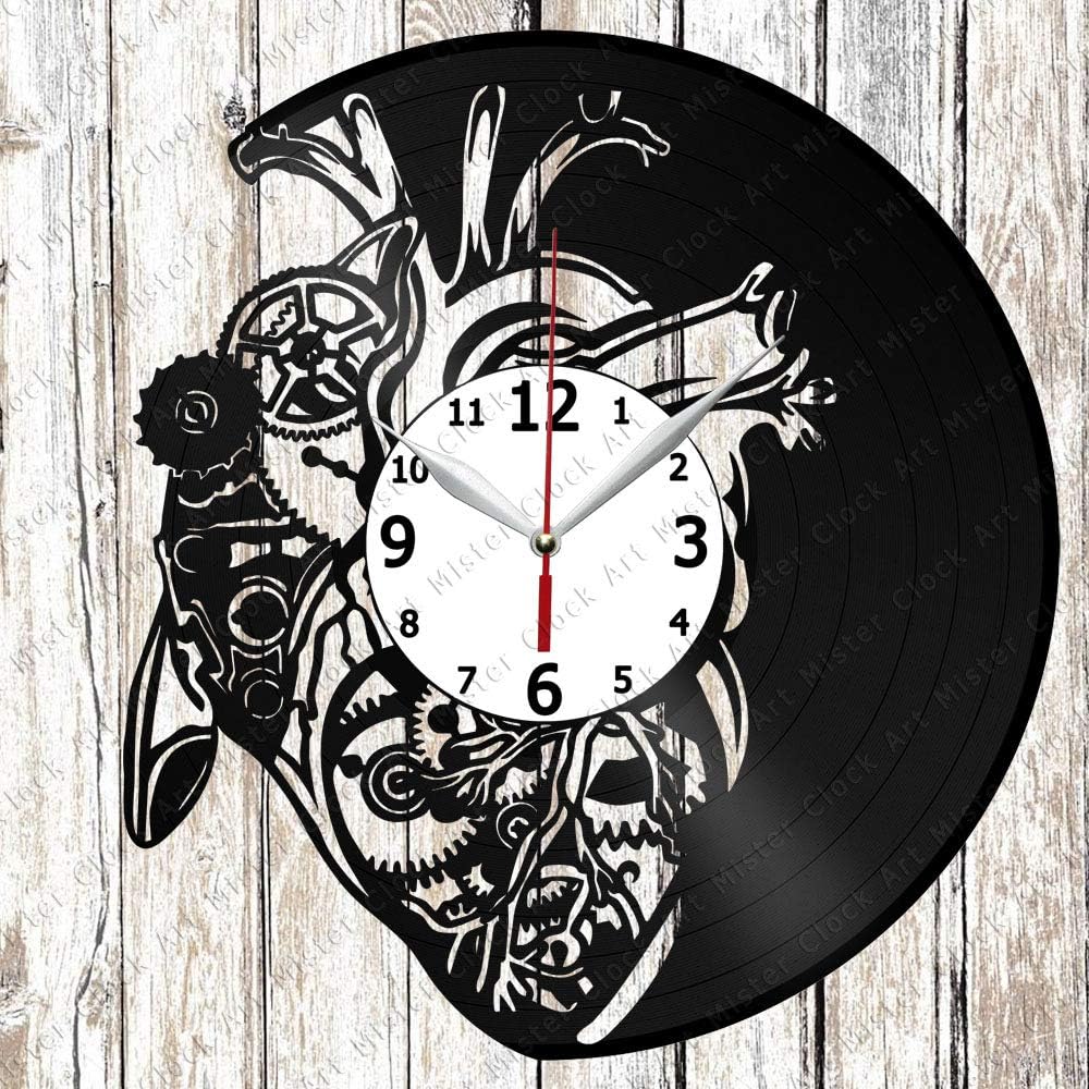 Amazon Com Steampunk Heart Vinyl Record Wall Clock Home Art Decor Unique Design Handmade Original Gift Vinyl Clock Black Exclusive Clock Fan Art Home Kitchen
